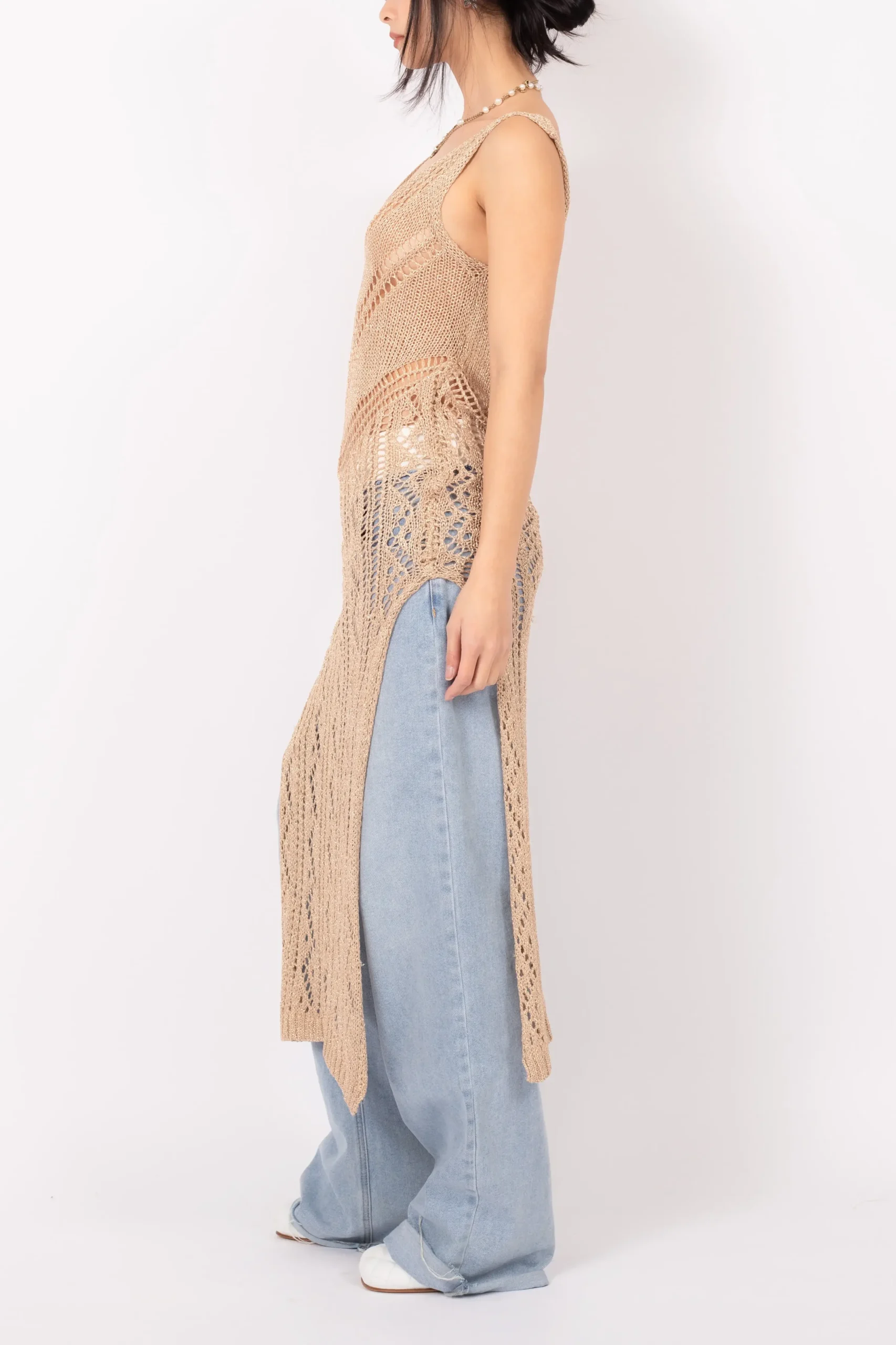 – Bodycon crochet dress with “lacquered” finish