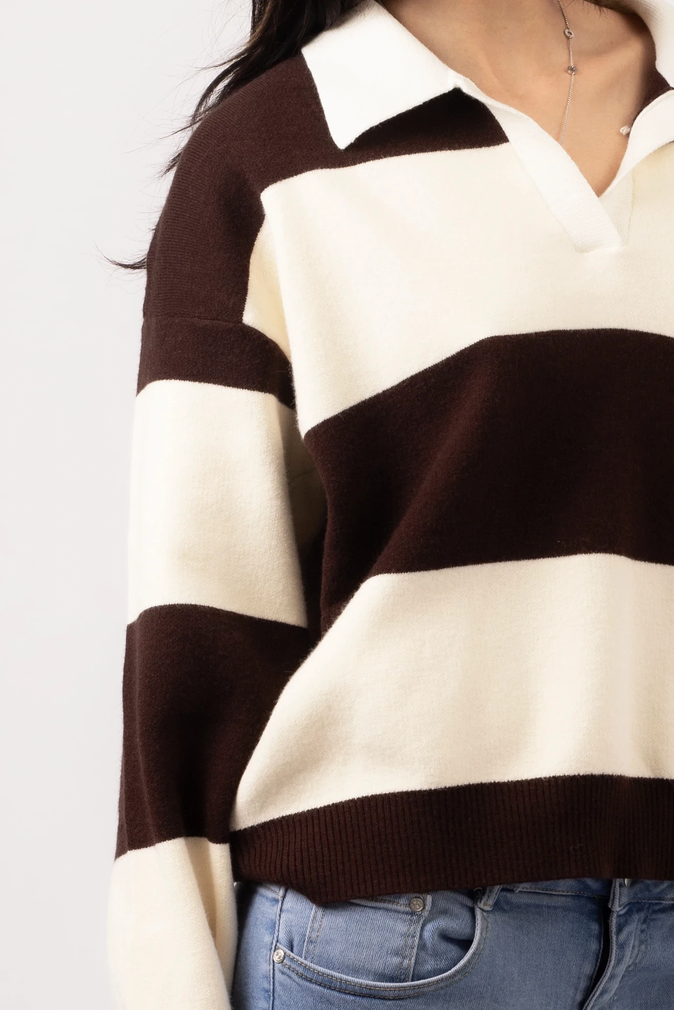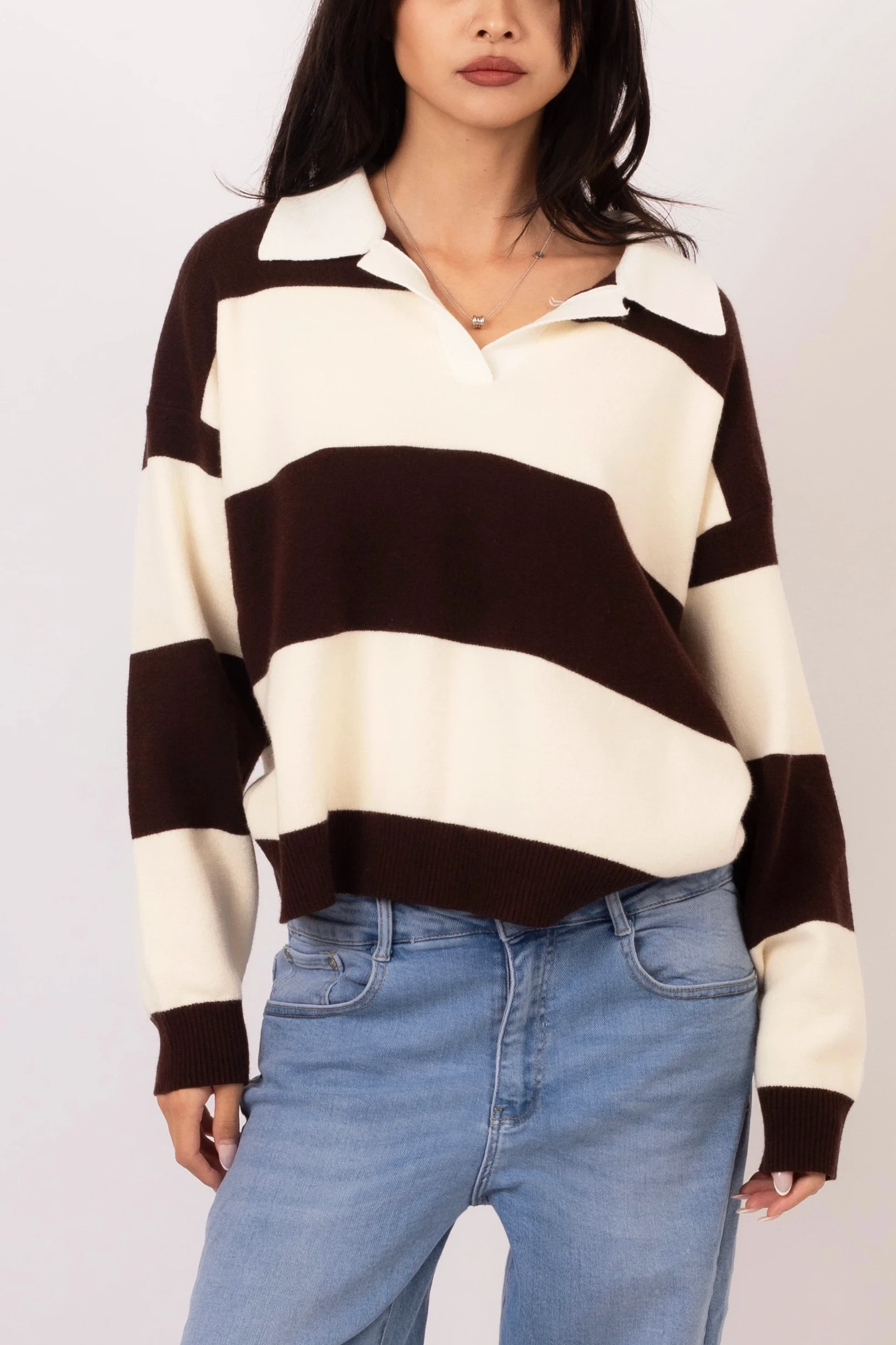 – Striped polo sweater